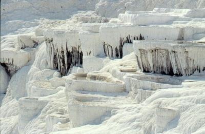 ile oluşan bir kayadır. Pamukkale termal kaynağını meydana getiren jeolojik olaylar geniş bir